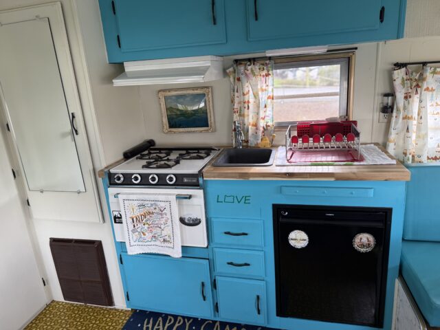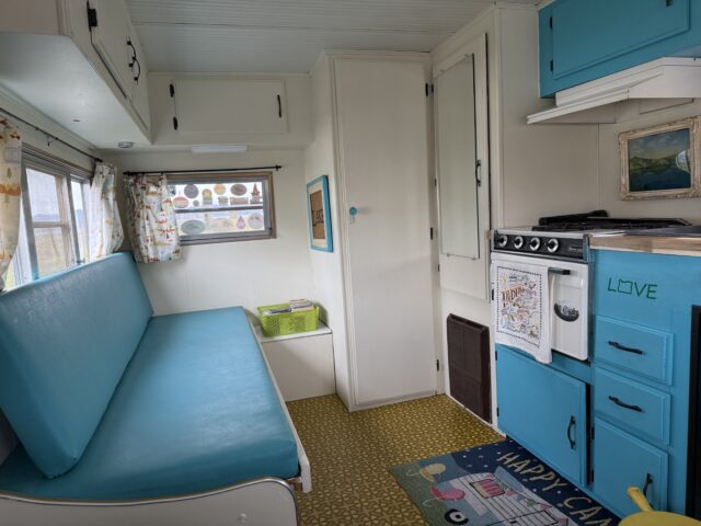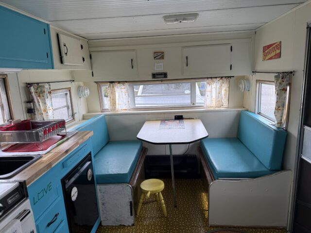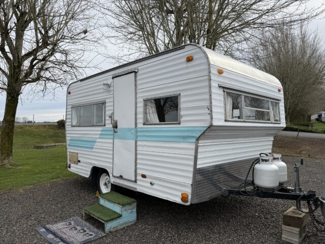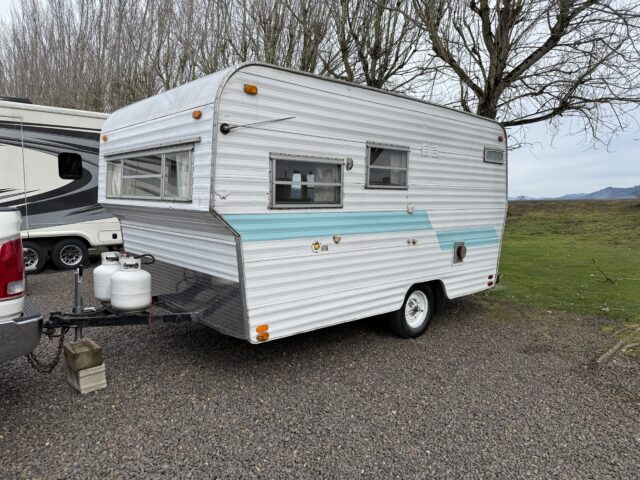 Restored 16' Vintage Trailer. New Dometic Fridge 24vDC with new battery, new tires, front diamond plate, new rear bumper with hitch, new counter tops with sink and Faucet, new lighting new seat upholstery and new trailer jack. Sleeps 4, couch and table pull down, custom air mattress with electric pump stays with the trailer. Porta Potty is not supplied in the bathroom closet. We will accept OBO if reasonable.