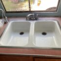 • Many original features, including the Dixie stove, the gas lamp, a Marvel fridge (compressor works, but fridge needs reconditioning), kitchen sink and counters, and the closet area with the fridge cutout. The rear full bed is a rare layout, usually it’s two twins or a bathroom in the back.
