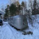 This 1955 Airstream Overlander/Cruiser has a serial number of 6589, built in California. It features the distinctive “whale Tail” rear end and is supported by a twin axle with newish wheels.