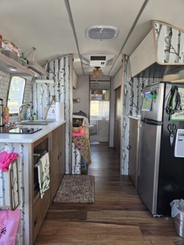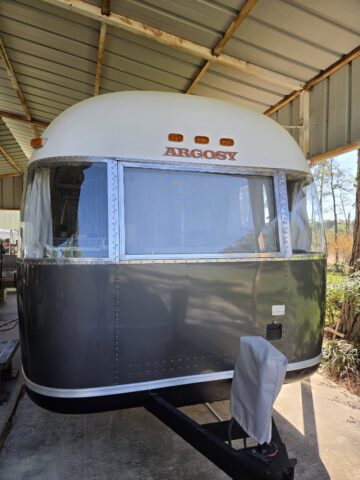 Beautifully restored Airstream Argosy interior and exterior completely redone. Keeping Vintage vibes and original features along with new modern updated amenities. All electric kitchen, solid surface countertops, original sink with hoodie ring, all original cabinets and layout. Tons of storage, updated electrical, pex, 3 tanks all working great ( grey, black and water) and new waste valves, LVP flooring, custom high performance upholstery, all windows resealed, new screens. Original bathtub and sink restored. Real "Penny" tub surround. Interior lights updated with original too. Exterior looks like new, meticulously restored and Vinyl Wrap installed. New Dexter Axles and shocks, Goodyear Endurance tires, electric jack, custom tail light assembly. All LED exterior lights. Bus- Kote roof sealed. Polished trim and clear coat. New custom door lock and deadbolt. Original Armstrong A/C works great and blows cold. And much more. Ready to go on adventures. It's all done! Have another Argosy to restore so selling this one.