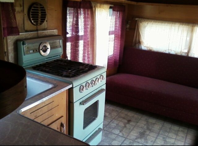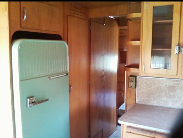 1957 Yellowstone 23 ft. all original including furniture, no bed. With water damage in the usual places under the windows. Roof leaking around the stove pipe, trailer will need a partial restoration. Needs new wheels and tires, has been parked for 10 years. True Birchwood beauty, pocket doors. They don't make them like this anymore! Full three-piece bath with shower. Separate bedroom.