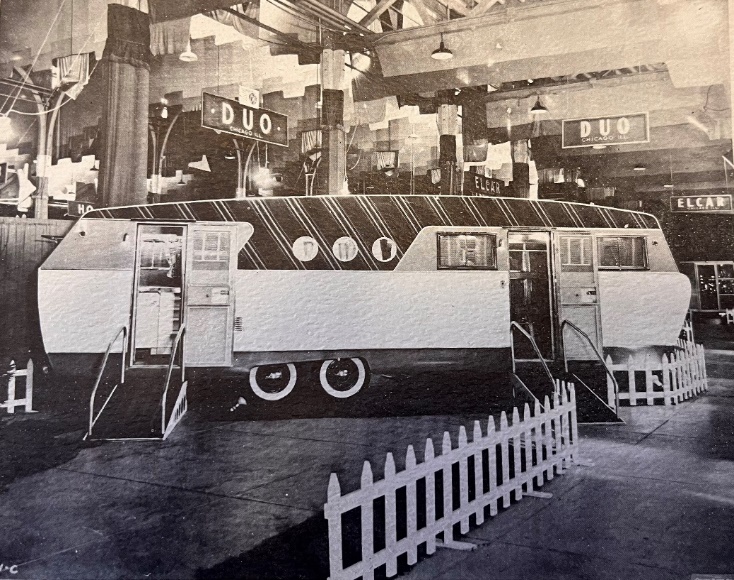 While plans to rebuild the Elcar factory were underway, Mid-States bought the Duo Coach company in Union City, Michigan in January of 1945 for $12,000. Production of government trailers started immediately. Duo Coach was started in the early 1930’s by Harold Dennison and Gerry Davison (Duo D’s). Like Milo Miller, Davison had built himself a travel trailer in the early 1930’s and used it to take his family on trips to Yellowstone, New England, and Washington D.C. Upon improving the original design, Davison decided to go into the trailer manufacturing business.