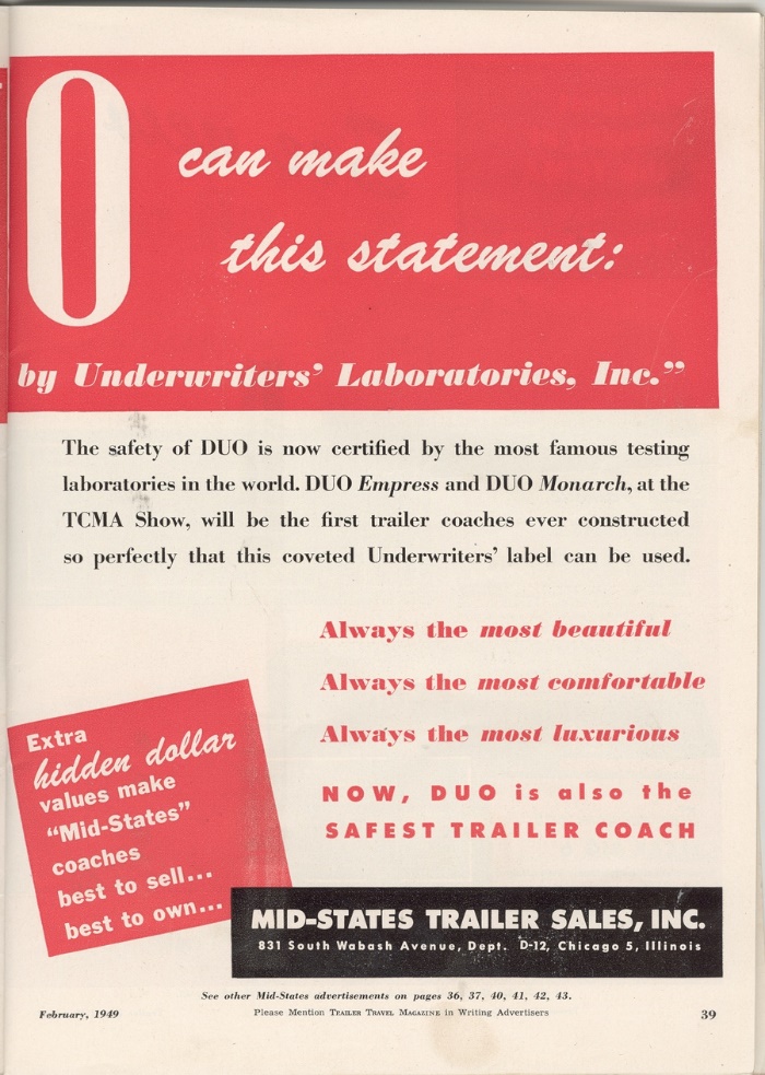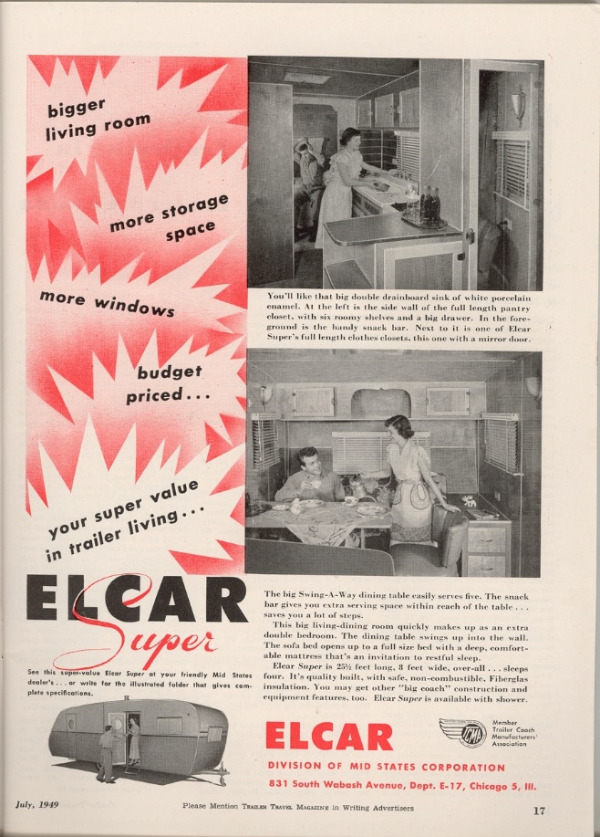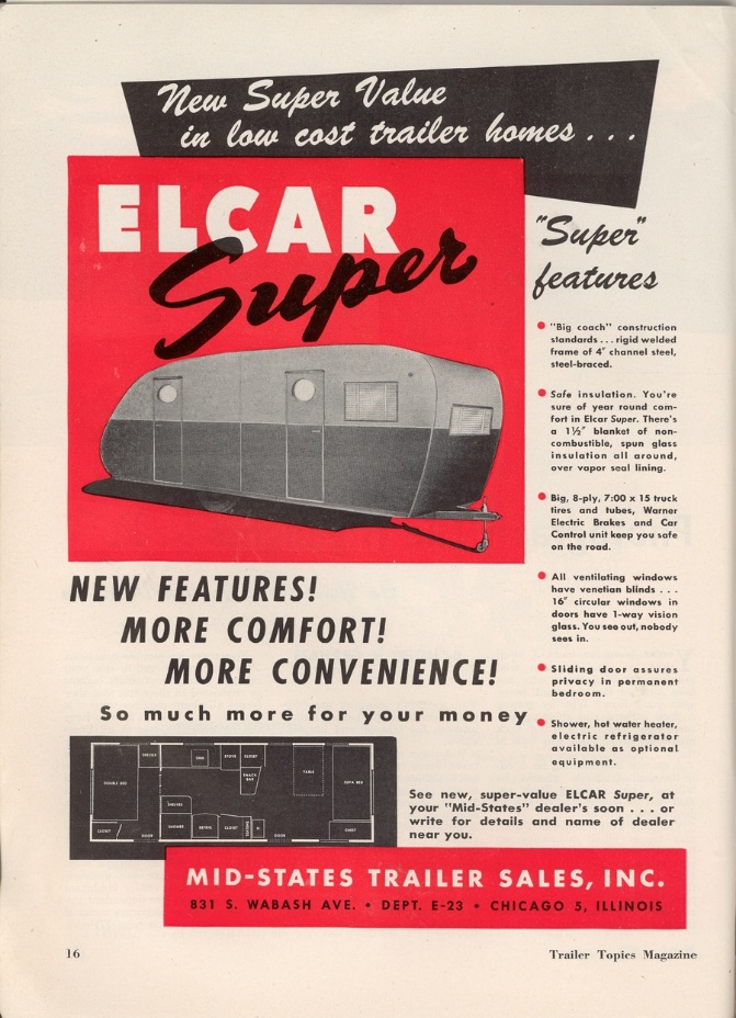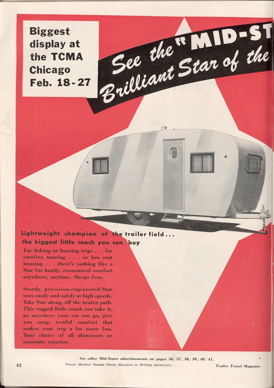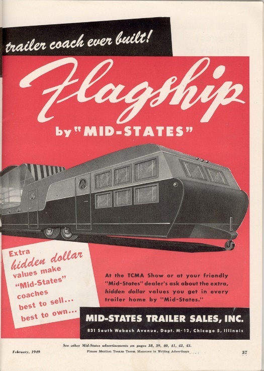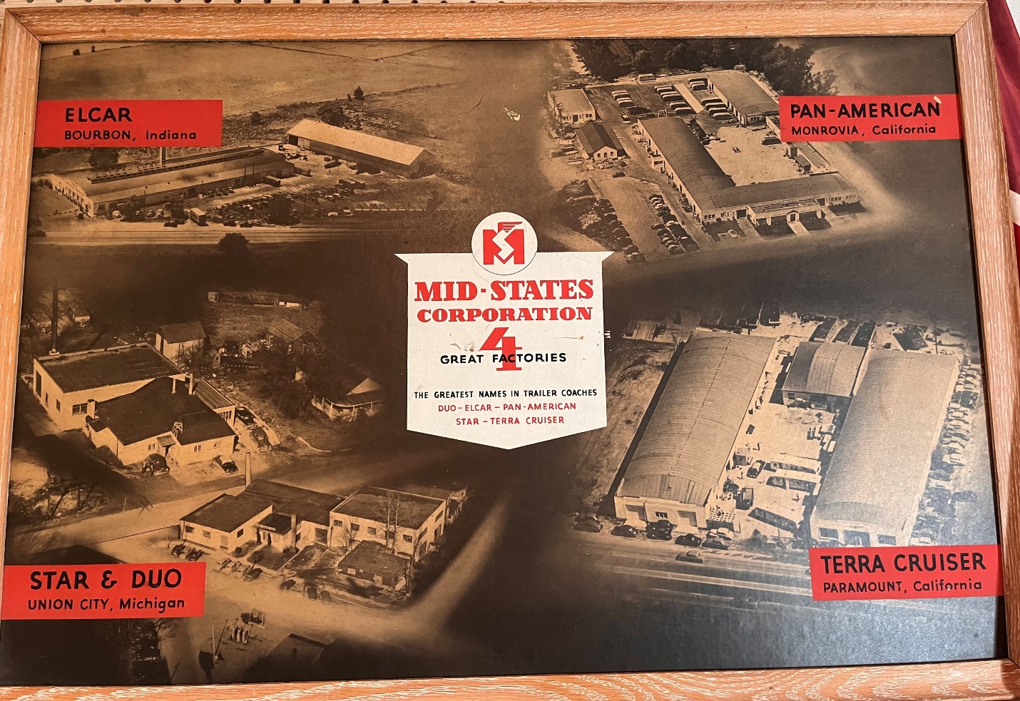 In 1951, Mid-States bought the Kozy Coach Company, in Kalamazoo, Michigan from Carleton W. Reade. This acquisition made Mid-States the world’s largest producer of mobile homes. More on Kozy Coach here: https://tincantourists.com/wiki/kozy-coach/