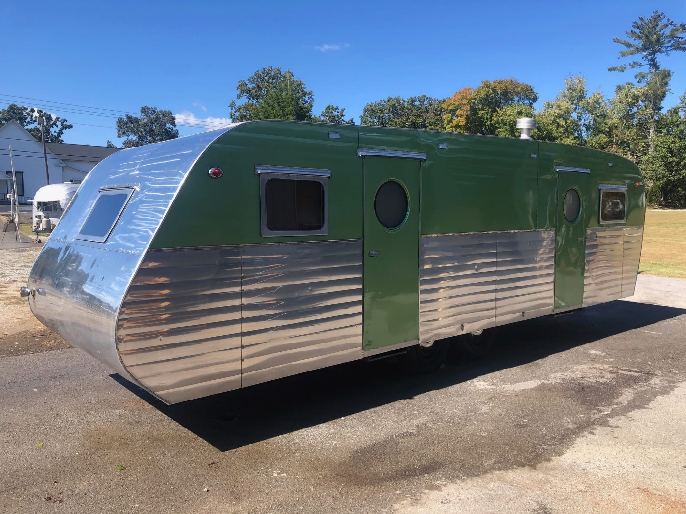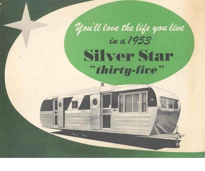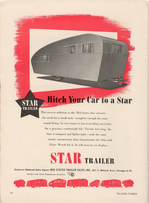 Late in 1949, Mid-States sent out a trailer owner survey which showed the need for a 21.5-foot-long coach. They decided to redesign the Star for the 1950 model year, and three new trailers were introduced. These included 3 models: a single axle 22’ model, and tandem axle 28’ and 35’. All models had 2 doors and aluminum siding. These would be produced with little change from 1950 to 1953 in Union City. Similar designs and layouts were carried over into the Elcar trailers of the same era.