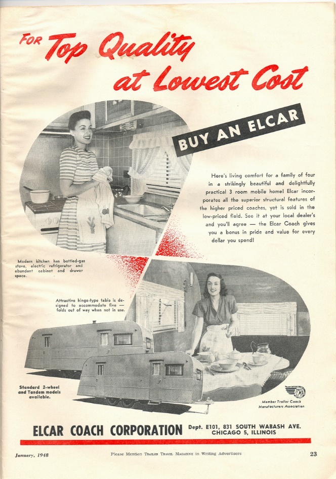The Mid-States Corporation was started in 1943 by William MacDonald. Headquartered out of Chicago, Illinois, the company leased trucks to haul small house trailers nationwide for the war effort. At its peak, they had 116 trucks under lease and were one of 4 companies with government contracts to do this work. Current house trailer suppliers were unable to match the demand of the government, so MacDonald decided to get into the manufacturing business by buying Elcar Coach in Bourbon Indiana on Nov. 1, 1944.